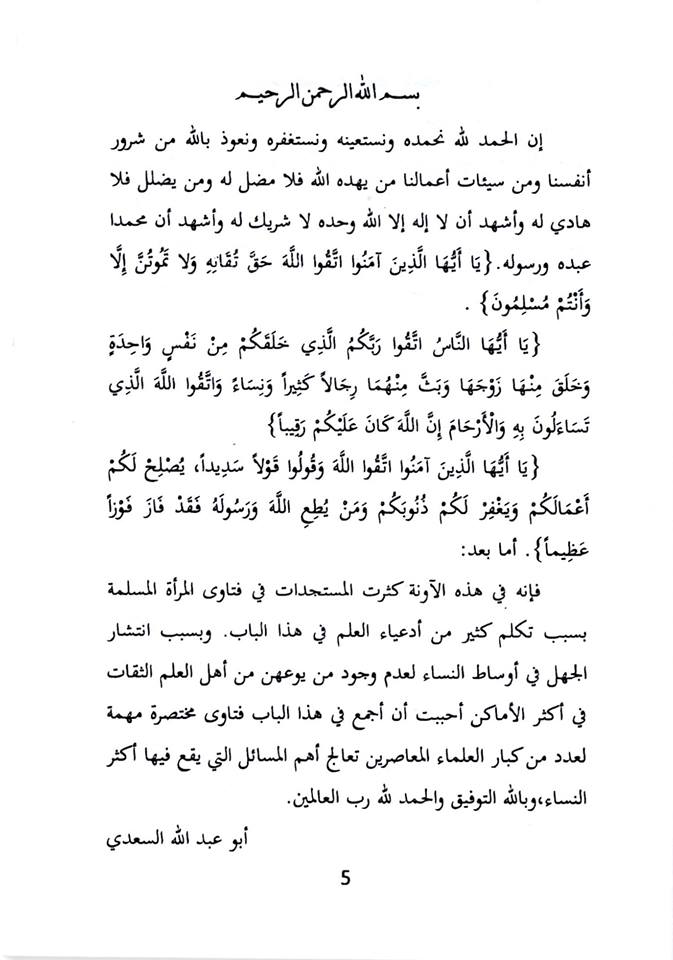 هذه رسالة تحتوي على مجموعة من الفتاوى التي تخص النساء لنخبة من كبار العلماء