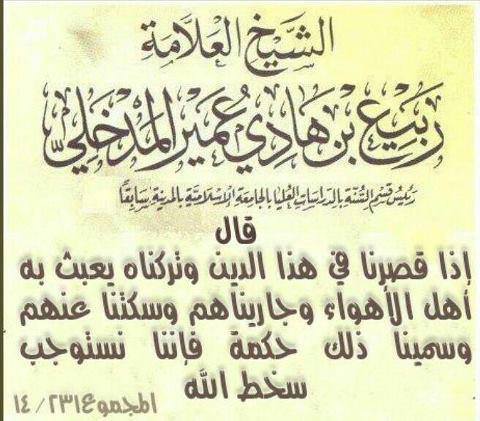 رد: مقتطفات ودرر العلامة ربيع المدخلي حفظه الله