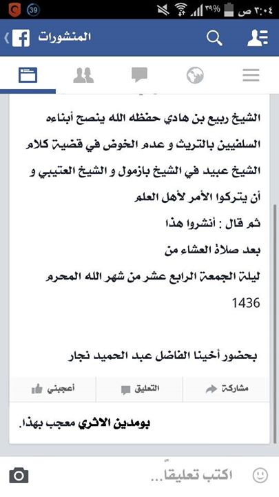 أنقل إليكم توجيه شيخنا الوالد : ربيع بن هادي فيما حدث بين المشايخ ، حفظ الله الجميع