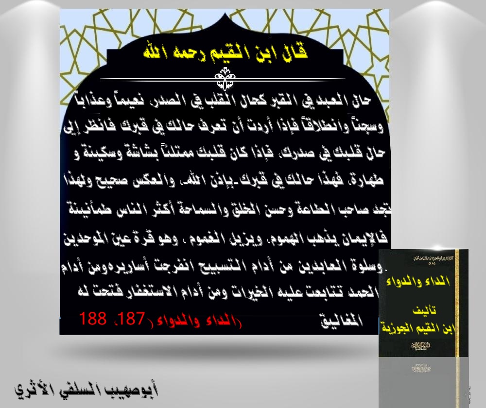 "حال العبد في القبر كحال القلب في الصدر، نعيماً وعذاباً، وسجناً وانطلاقاً.