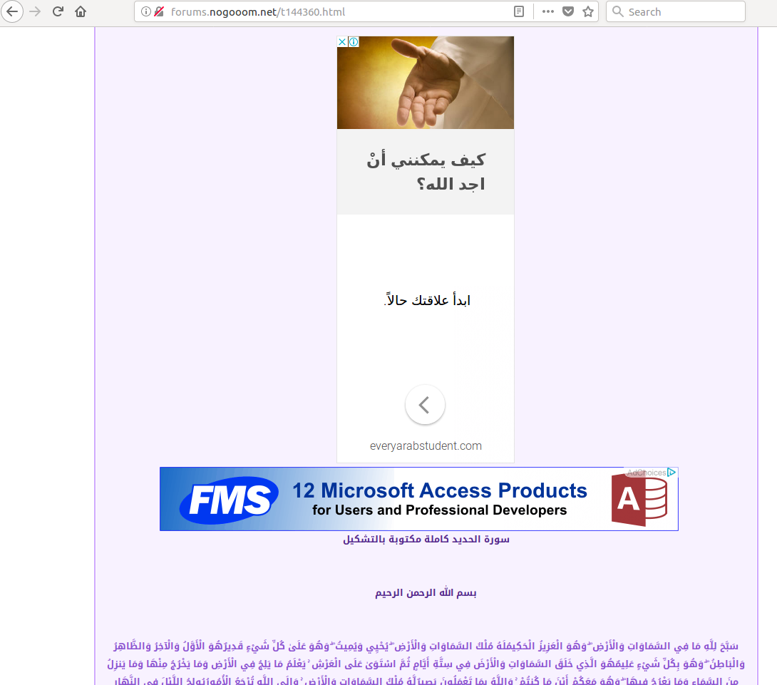 وقد رأيت أكثر من مرة إعلانات تنصيرية فى مواقع تعرض أمور دينية إسلامية .