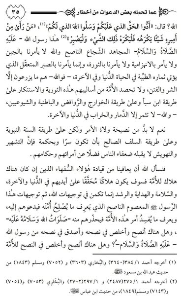 مثل مسألتنا هذه تماما ، الإنكار العلني على ولاة الأمر في غيبتهم..
