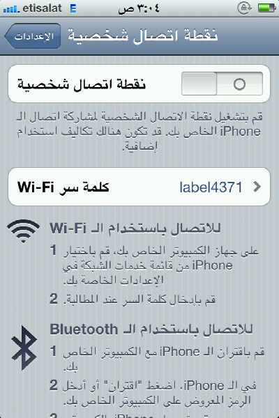 كيف تجعل الآيفون 4كنقطة اتصال شخصية ؟