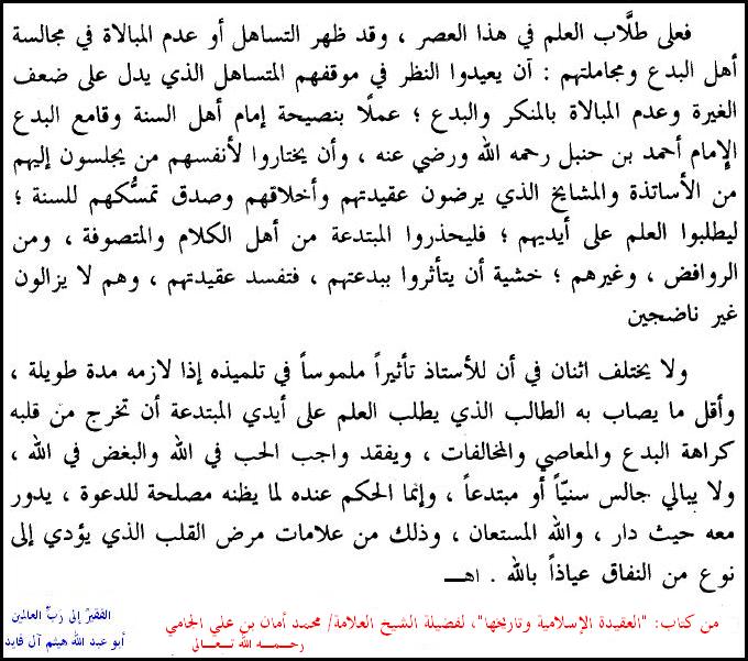 4. طلاب العلم في هذا العصر, وقد ظهر منهم التساهل أو عدم المبالاة في مجالسة أهل البدع ومجاملتهم