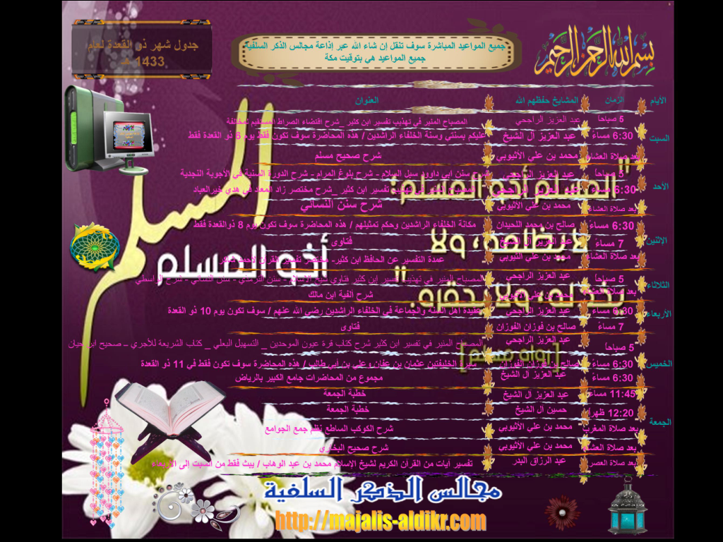 جداول إذاعة مجالس الذكر السلفية لعام 1433هـ