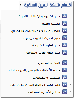 ــ أمثلة على خدمات شريط شبكة الأمين السلفية للتواصل: